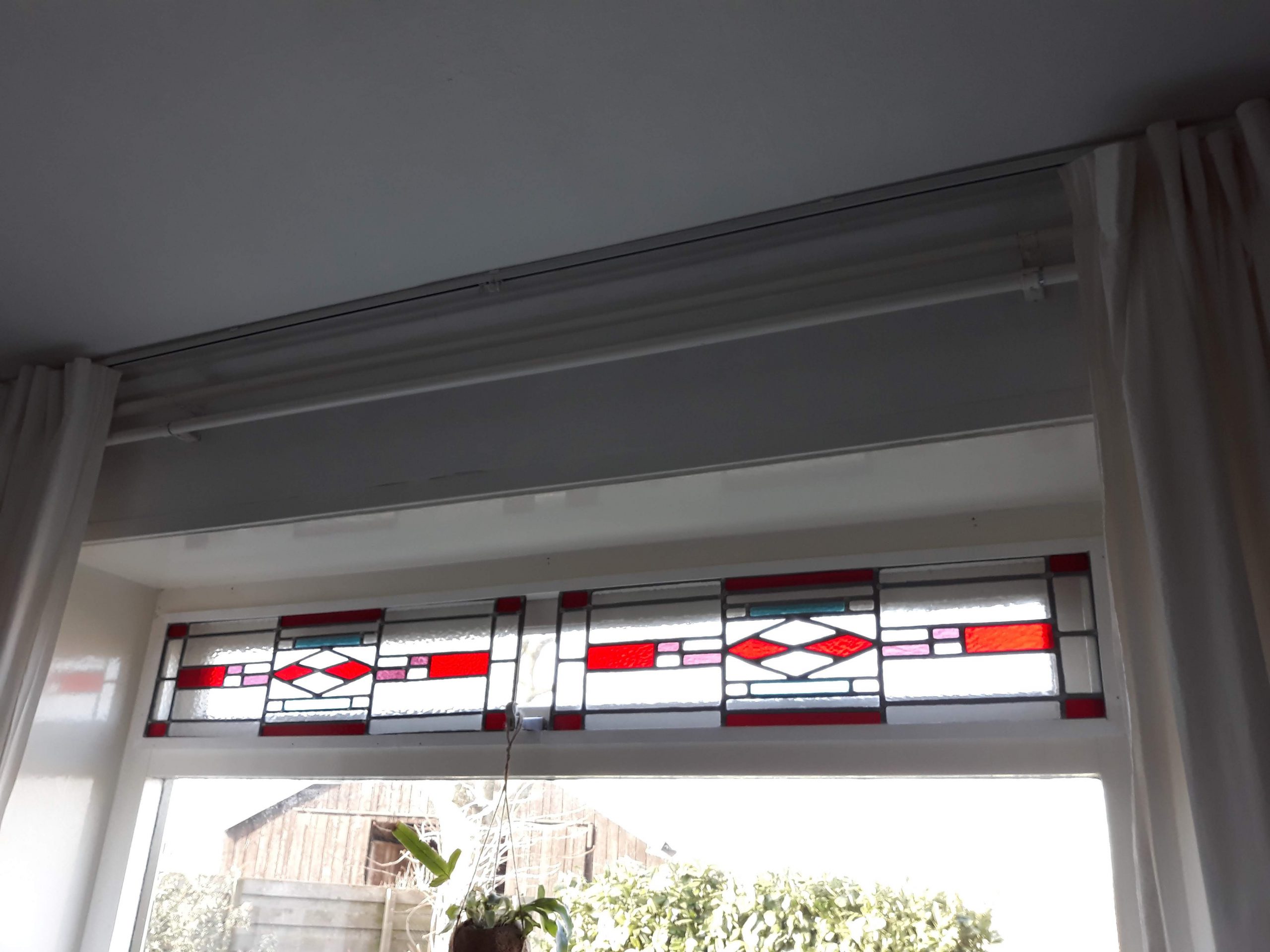 **Voorzetramen of Ophangramen**: Als u geen inkijk wilt, maar ook geen standaard stoffering, bieden glasinloodramen een ideale oplossing. Deze kunnen geheel naar eigen wens worden vervaardigd. Een prachtig decoratief glas-in-loodraam zorgt voor mooi licht en kleur in uw huis. De ramen zijn eenvoudig schoon te houden en kunnen gemakkelijk worden verplaatst naar een andere locatie. Hoewel glasinloodramen niet goedkoop zijn, zijn ze uniek en gaan ze jarenlang mee. Ze zijn ook een bijzonder cadeau. Daarnaast is het mogelijk om een oud glas-in-loodraam te restaureren en/of in te zetten in een nieuw raam.