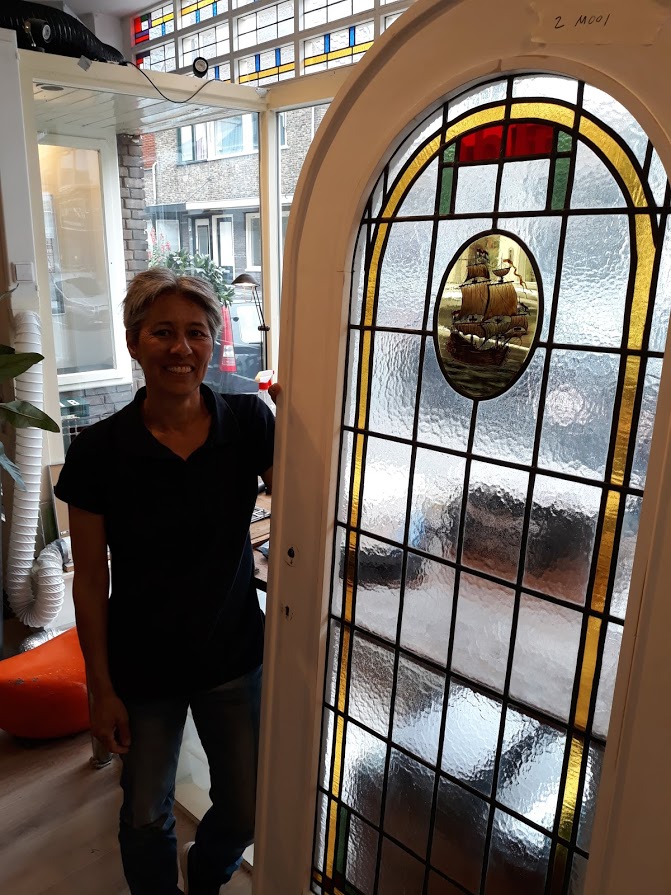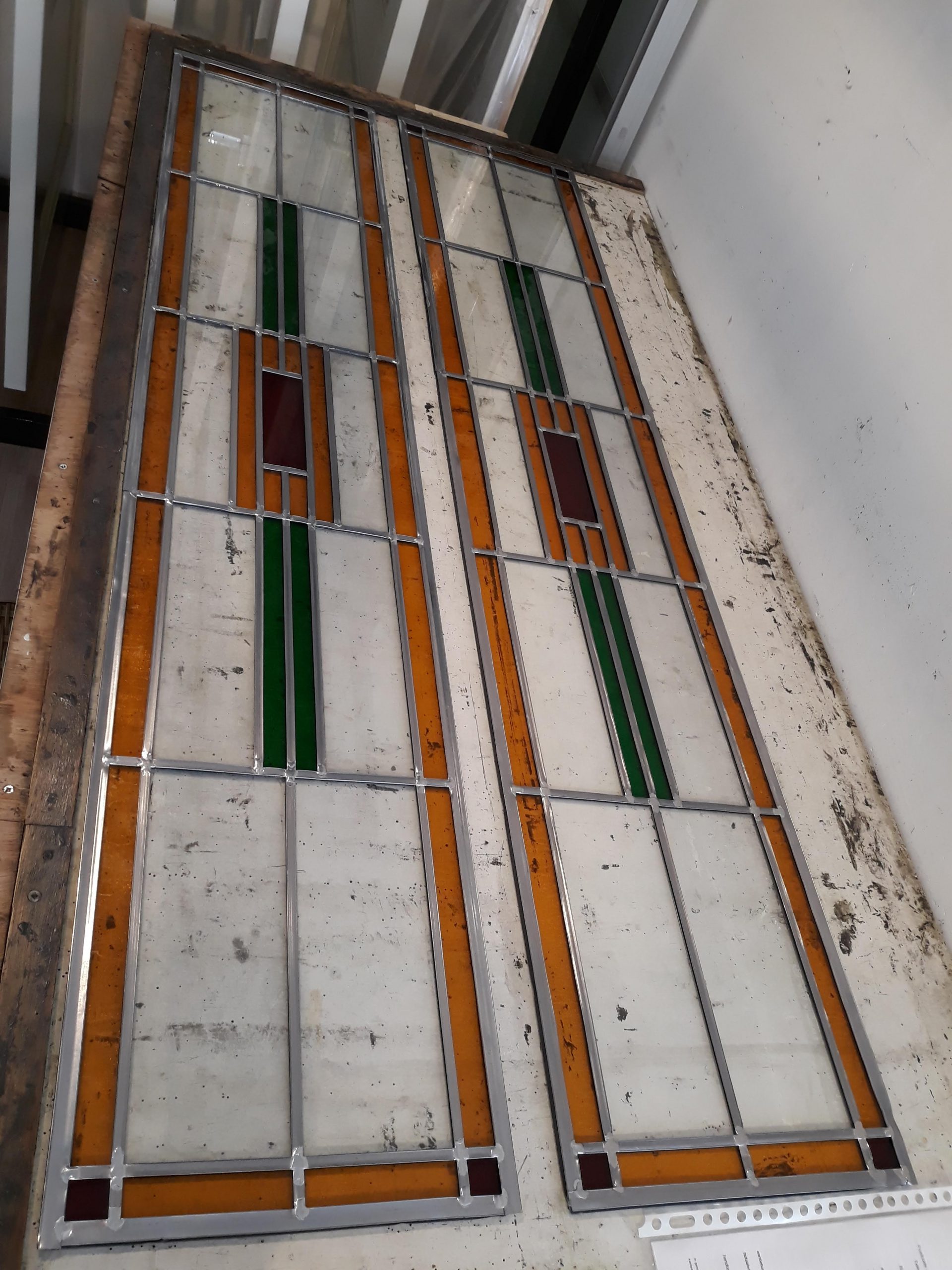 **Restauratie**: In mijn atelier worden beschadigde glas-in-loodpanelen met zorg gerestaureerd. Kapotte ruitjes of vergaan lood worden vervangen, zodat de panelen weer tientallen jaren meegaan. Het restauratiewerk wordt zoveel mogelijk in het atelier uitgevoerd, maar kleine reparaties kunnen ook op locatie worden gerealiseerd in Deventer en omgeving.